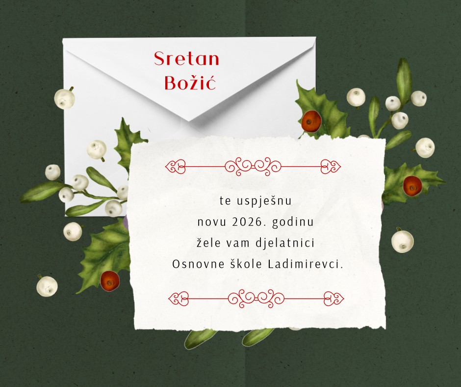 Osnovna škola Ladimirevci i ravnatelj Damir Jakopiček srdačno Vas pozivaju na svečane priredbe povodom božićnih blagdana i završetka prvog polugodišta školske godine 2025./2026. Priredbe će se održati prema sljedećem rasporedu: Područna škola Harkanovci – srijeda, 17....