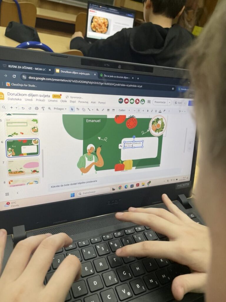 Učenici su istraživali što to zapravo jedu svakog jutra. Razgovarali su o tome biraju li uvijek iste namirnice ili vole da im doručak bude raznolik, te što sve utječe na izbor hrane. Kroz zajednički rad naučili su kako treba izgledati uravnotežen doručak i zašto je važno unositi različite skupine namirnica – žitarice, mliječne proizvode, voće i zdrave masti.