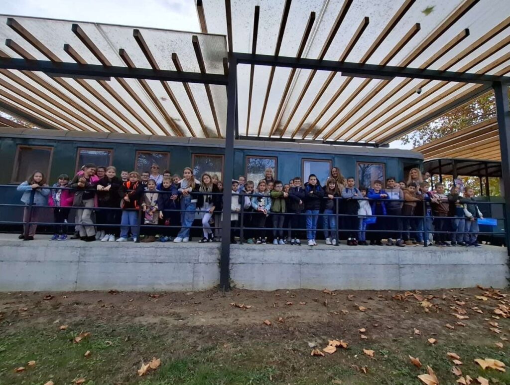 Slijedio je zatim najzanimljiviji dio izvanučionične nastave, obilazak spomen vlaka u centru grada. Ravnateljica muzeja povela je učenike u obilazak vlaka. Čuli su zanimljive podatke o samom vlaku te su u vlaku pogledali dio filma za djecu Vlak u snijegu. Na kraju su se zajedno sa svojim učiteljicama i ravnateljicom muzeja fotografirali ispred vlaka i sretni i zadovoljni autobusom se vratili svojim kućama.