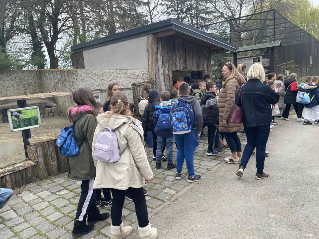 Nakon predstave uslijedila je kratka pauza za školski obrok i odmor, tijekom koje su učenici imali priliku razmjenjivali prve dojmove. Slijedio je posjet Zoološkom vrtu Osijek, gdje su učenici tijekom organiziranog obilaska mogli vidjeti brojne životinjske vrste iz različitih dijelova svijeta. Promatrajući životinje, učenici su učili o njihovim staništima, prehrani i načinu života te su postavljali pitanja i pokazivali znatiželju. Poseban naglasak stavljen je na važnost očuvanja prirode, zaštite životinja i odgovornog ponašanja prema okolišu. Učenici su uočavali razlike između prirodnih i umjetnih staništa te razvijali svijest o ulozi zooloških vrtova u zaštiti ugroženih vrsta.