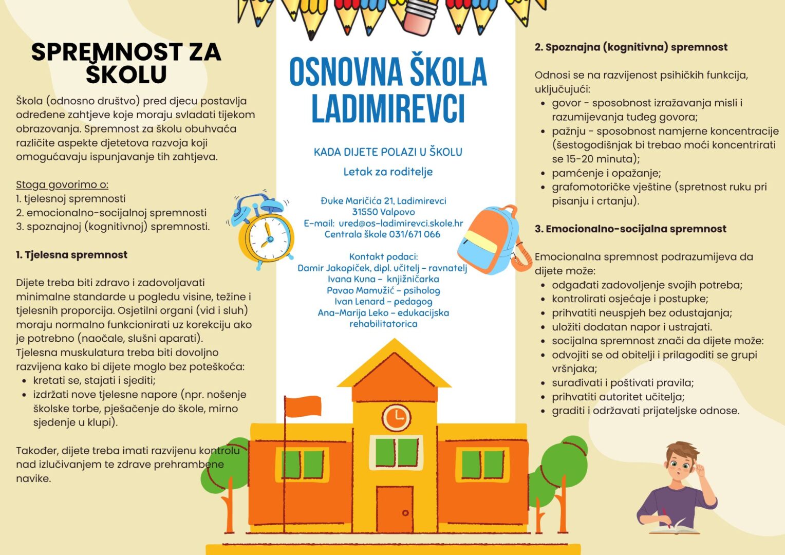 Za sve ostale informacije, termine testiranja u školi, liječničkih pregleda i laboratorijskih pretraga potrebno je pratiti mrežne stranice Osnovne škole Ladimirevci kojoj dijete pripada prema upisnom području.